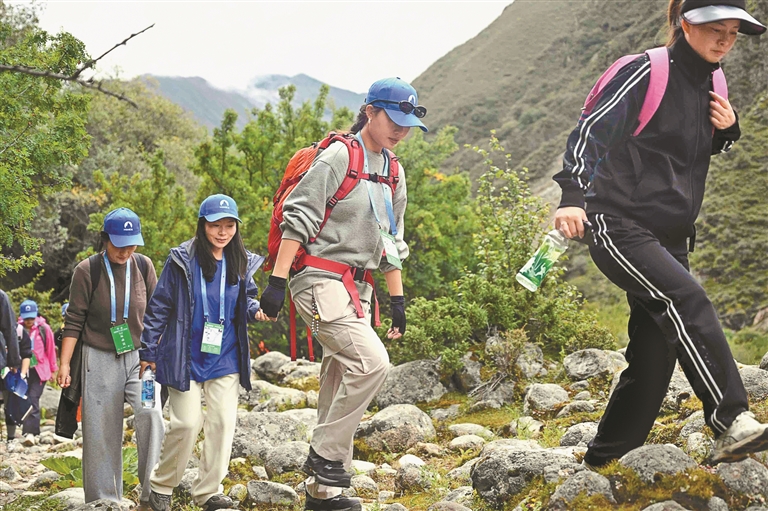 圖為參加西藏戶外(露營)徒步大會的戶外徒步愛好者在曲水縣色甫溝行進。本報記者 歐珠次仁 攝
