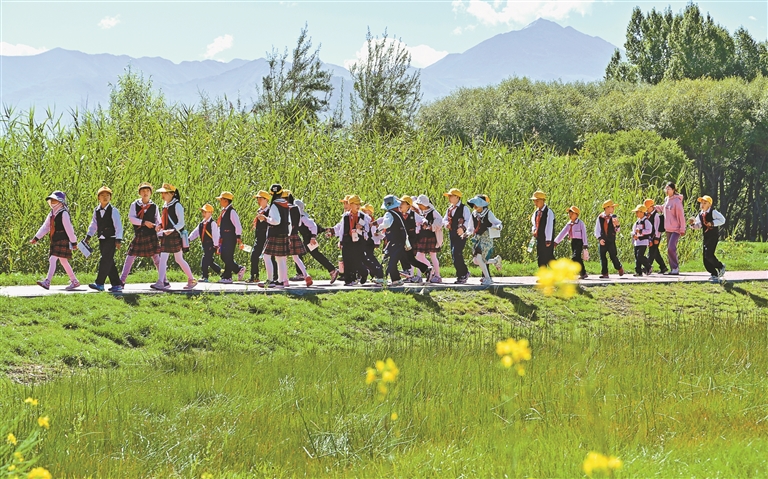 近日,拉薩市實驗小學組織學生來到拉魯濕地國家級自然保護區開展生態研學活動,幫助學生開拓科學視野,增強環保意識。