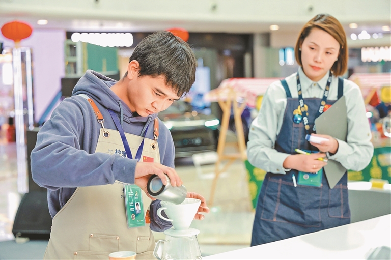 圖為比賽選手在進行咖啡沖煮。記者 格桑倫珠 攝