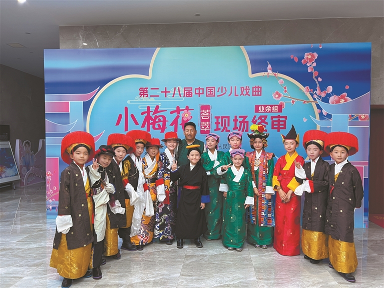 2021年,他帶領少兒藏戲班的孩子們遠赴北京,參加第二十五屆中國少兒戲曲小梅花比賽。“去北京之前,孩子們特別興奮,也有點緊張。”洛桑扎西笑著說,“我就跟他們說,咱們不是去比賽的,是去展示藏戲的美,把咱們藏族小朋友的風采展現出來就好。”