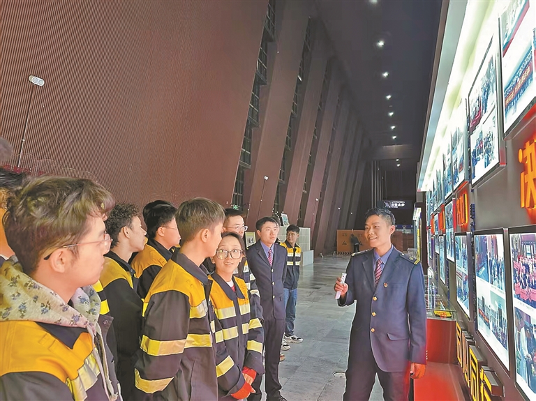 圖為中國鐵路青藏集團有限公司拉薩片區新老團員聆聽青藏鐵路精神講解。