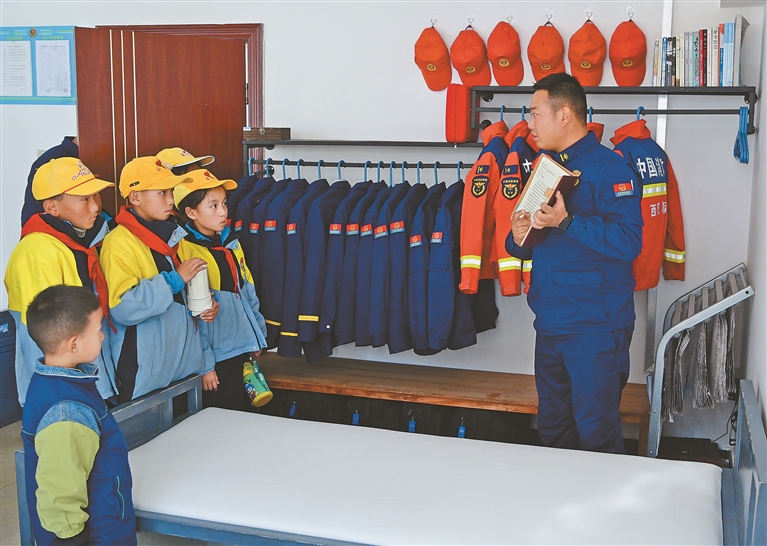 近日,拉薩市城關區海薩小學師生走進西藏森林消防總隊特勤大隊營區,親身體驗“119”宣傳月暨營區開放日活動。