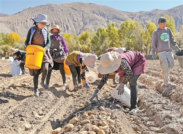 圖為南木林縣艾瑪鄉山巴村村民正在分揀土豆。記者 旦增嘎瓦 攝