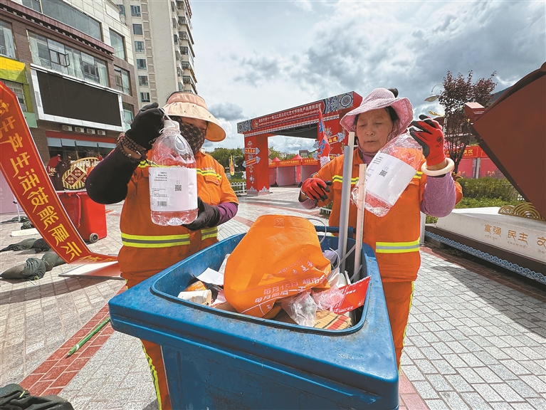 圖為昌都市的環衛工人在進行垃圾分類。記者 白瑪澤旺 攝
