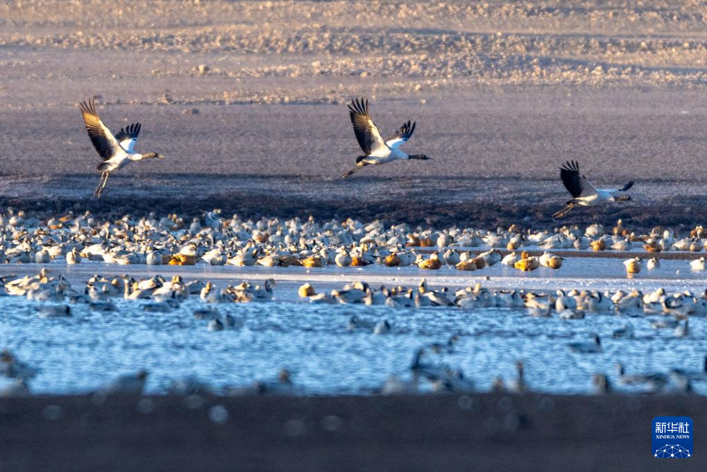 冬日時節,拉薩市林周縣迎來大批越冬候鳥,黑頸鶴、斑頭雁、赤麻鴨等候鳥在河谷、湖泊等地覓食、休憩。