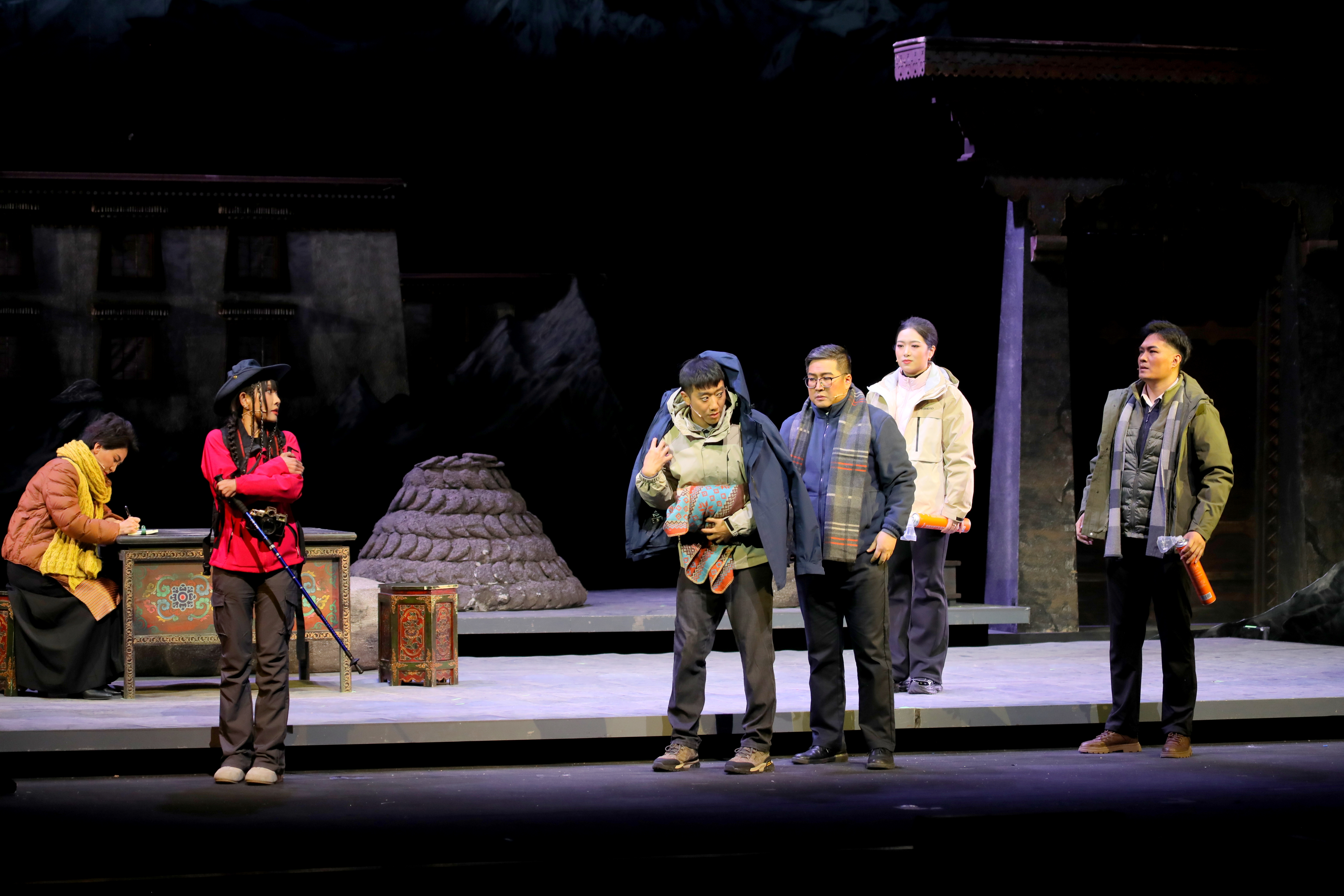 據悉,話劇聚焦程燕杰、宋亦樂、曾超、周旭峰、原慧為代表的北京援藏干部群像,生動展現其在雪域高原踐行使命的擔當風采。為強化地域文化表達,演出特別邀請拉薩市城關區娘熱民間藝術團7名演員參與,原汁原味的藏戲開篇與情感飽滿的藏舞表演,成為京藏文化深度對話的鮮活載體,彰顯兩地文化交融成果。