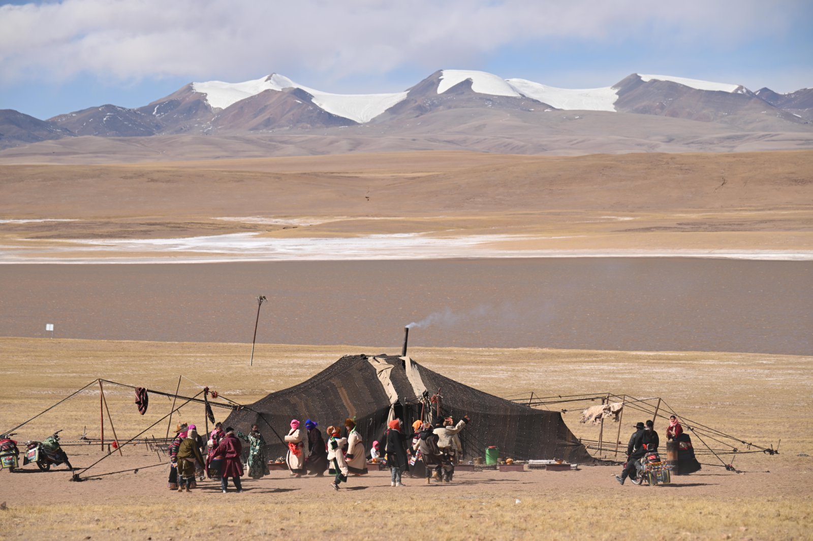 這里的空氣含氧量不足平原的40%,常常刮八級大風(fēng)。據(jù)統(tǒng)計數(shù)據(jù)顯示,劇組在海拔5000米以上的拍攝時長達(dá)62天,最高拍攝點到達(dá)5800米。缺氧、嚴(yán)寒、天氣突變、百公里級別的轉(zhuǎn)場……在種種艱苦中,劇組克服了困難,完成3000公里實地拍攝旅程。