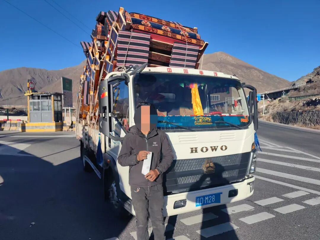 當日,執勤民警發現一輛號牌為藏DM28**的貨車行駛軌跡平穩性欠佳,車輛裝載的貨物明顯超出車身的規定高度,存在較大交通安全隱患。民警當即示意該車駕駛員將貨車駛至安全區域接受檢查。