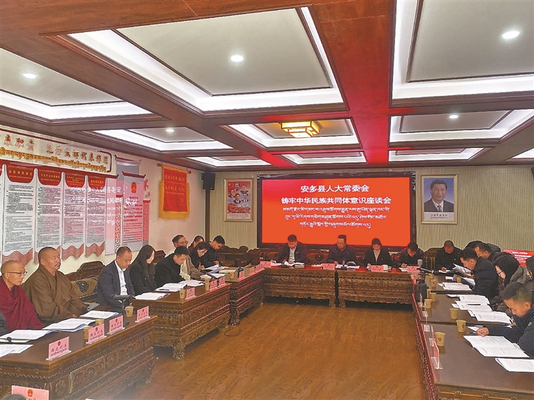 圖為安多縣人大常委會召開鑄牢中華民族共同體意識座談會現場。記者 汪純 攝