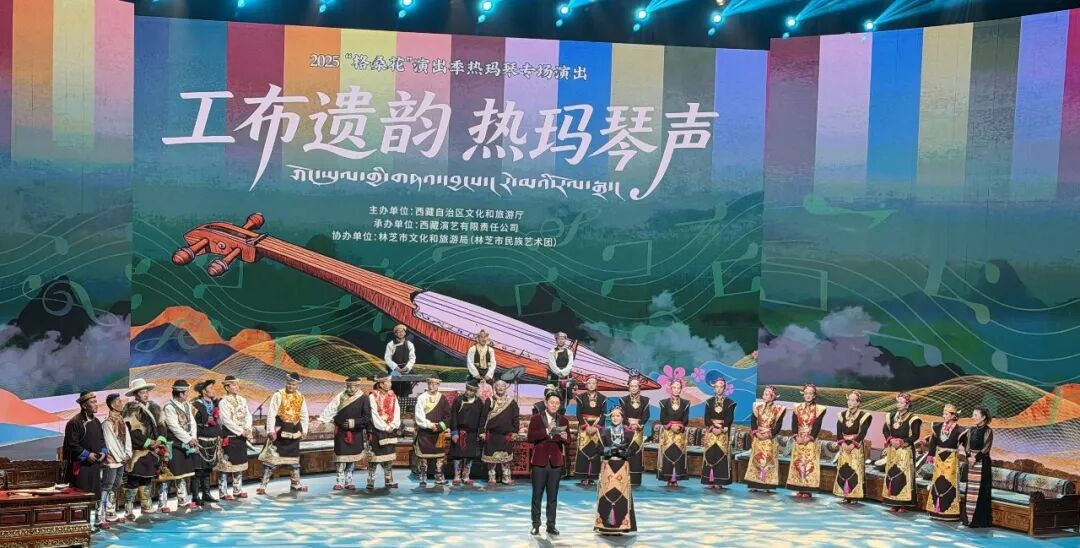 記者在現場看到,本場專場演出以林芝市(工布地區)獨有的拉、彈樂器熱瑪琴為核心,通過3個樂章、12首作品,讓這把擁有1200年歷史的“工布古木”煥發新生。演出立足新時代文藝創作要求,以更系統、更專業的舞臺語言,對傳統工布文化的脈絡與特色進行了創新性表達與傳承性展示。不僅如此,演出還特邀“熱瑪琴”傳承人洛旦的養女以情景劇《洛旦的熱瑪琴》講述熱瑪琴及其家族傳承故事。整場劇目在表演、現場采訪、創作分享中,讓老少樂手同臺,熱瑪琴與扎念、竹笛、圖瓦鼓對話,贏得觀眾陣陣掌聲。