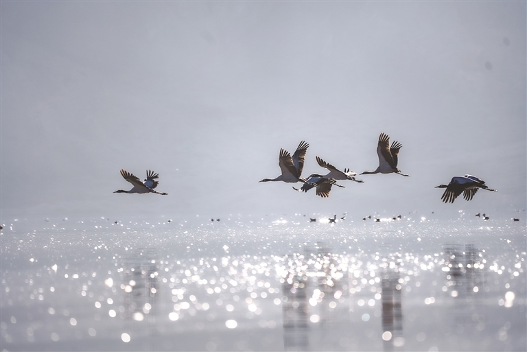 近日,被譽為 “高原仙子”的國家一級保護動物黑頸鶴如期飛抵拉薩市林周縣卡孜水庫越冬,與斑頭雁、赤麻鴨等水鳥共同構成高原濕地生態畫卷。