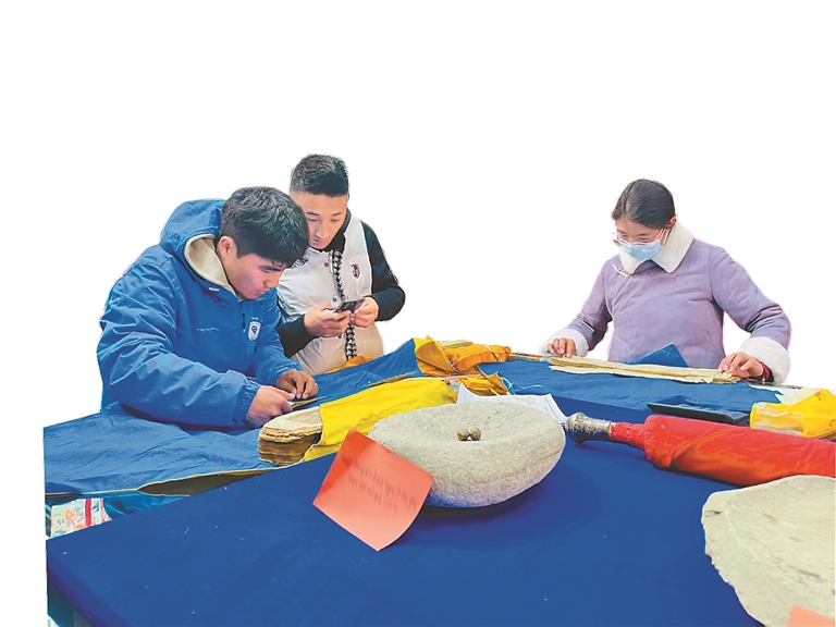 “地理坐標挖掘”活動環節,像是一場趣味十足的“尋寶游戲”。學生們深入鄉鎮、村落,走訪民間藏醫、藥農,循著線索,找到了那曲市比如縣這個盛產綠絨蒿、冬蟲夏草的藥材寶庫。在山南市扎囊縣扎塘鎮體會到了作為《四部醫典》最早木刻版“扎塘版”刻印地的歷史厚重感,探尋山南市扎囊縣桑耶鎮作為藏醫藥學搖籃的傳奇故事。在藏藥挖掘過程中,還學到了生態保護知識,明白了藏醫藥可持續發展與高原生態保護的緊密聯系,真正實現了“在玩中學、在學中悟”。