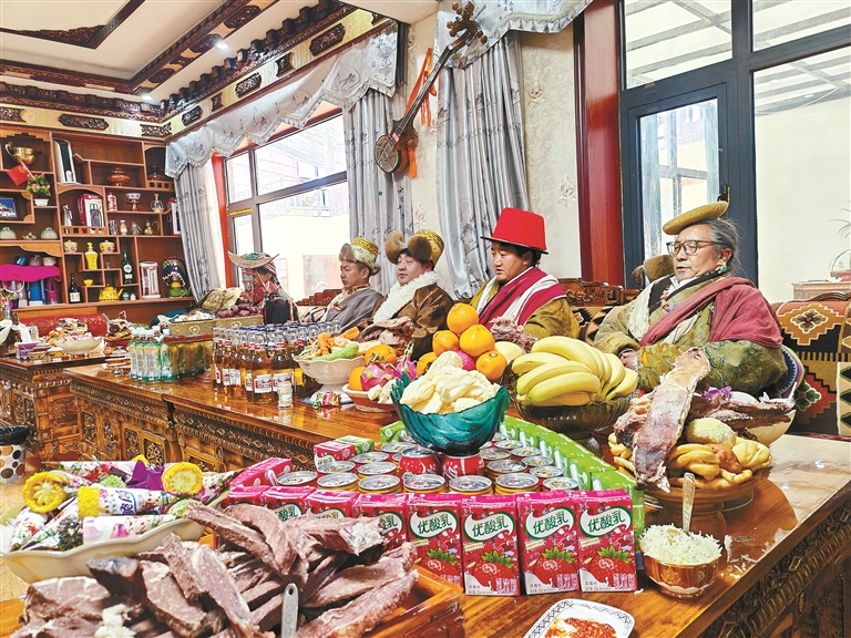 圖為普蘭新年當(dāng)日,西德村村民旦成益西一家身著普蘭傳統(tǒng)服裝,家中桌案年貨豐盛,團(tuán)圓迎新年。記者 永青 本報(bào)通訊員 多吉堅(jiān)參 攝