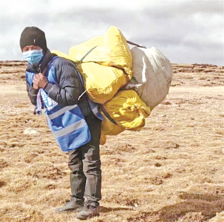 海拔超5000米,每一步都很沉重。三袋垃圾,兩三公里的路,他走了半個多小時。有人問他累不累,他咧嘴一笑:“幸好那天沒刮大風,天也沒黑透,順利得很。”