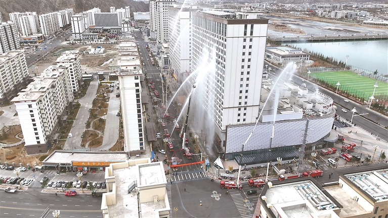 為提升人員密集場所工作人員、商戶、住戶的消防安全意識和自防自救能力,堅決預防和遏制重大火災事故的發生,近日,自治區消防救援總隊在拉薩市柳梧萬達廣場組織開展高層建筑和大型商業綜合體滅火救援實戰演練。演練共調集41輛各類車輛、367名參戰人員,公安、應急、醫療等多部門協同參與,全面檢驗復雜火災事故的應急處置與聯動救援能力。