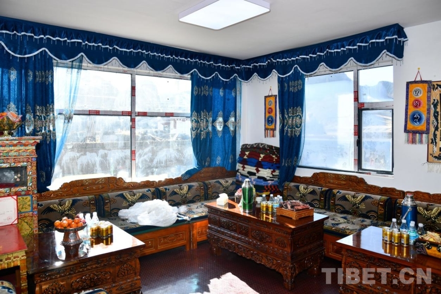 他的妻子次仁拉宗坐在門前編織毛線,談及新家,她有說不完的話。“這個新家我們裝修花了3萬多元,家具都是從定日縣城買的,也有一些是從舊家里搬出來的,等過完這個年我們還想著把現在的大白墻再裝飾一下。”在旦增的家里,墻面掛滿了孩子們的獎狀,三個孩子中,大女兒在西藏大學讀書,二女兒讀高一,最小的孩子即將進入幼兒園。