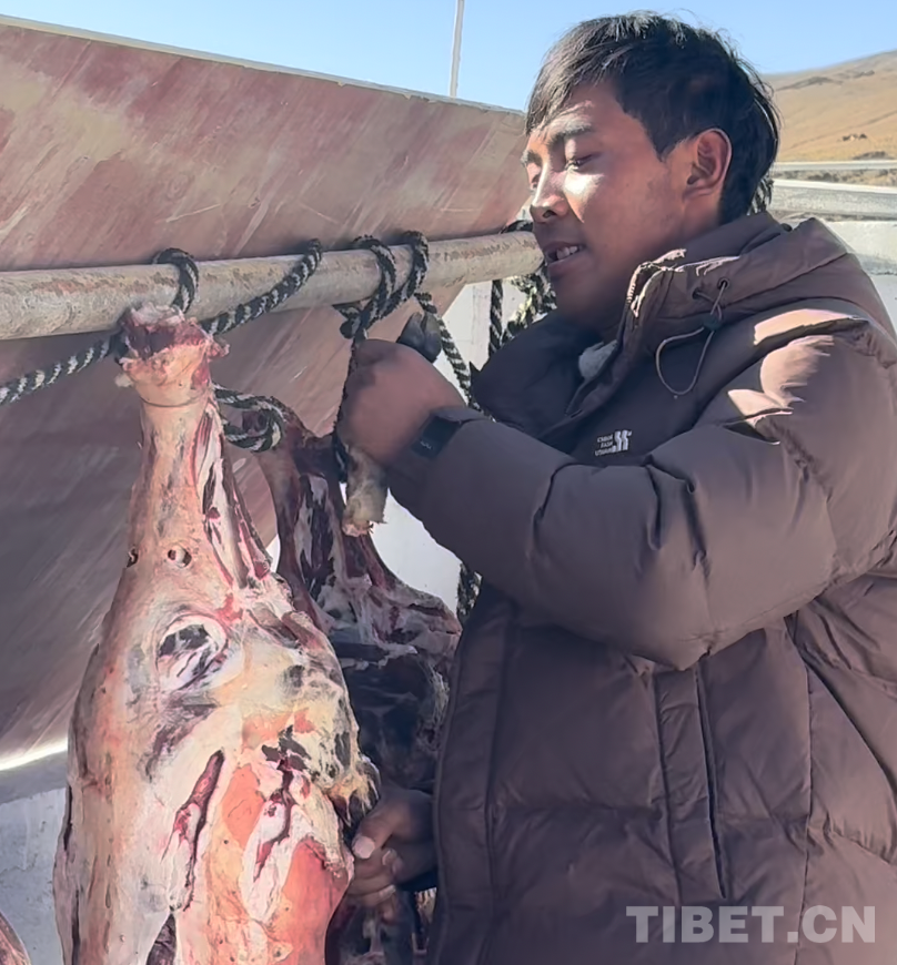 在定日縣長所鄉古榮村,村民羅布正在新房前晾曬風干羊肉。“這將是我們在新家過的第一個年,”他說,“希望一年比一年好。”風干羊肉的香氣在冬日的空氣中飄散,炊煙從嶄新的屋頂升起,處處洋溢著即將到來的日喀則農事新年的味道。