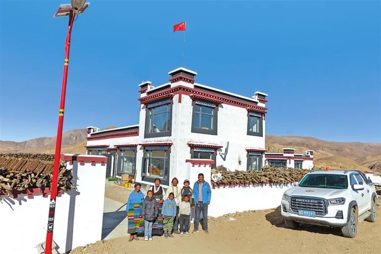 在昂仁縣卡嘎鎮薩律村,村民扎西加措一家正忙著布置新家。屋內,傳統的藏式彩繪已經完成;屋外,新定制的家具正一件件搬入。