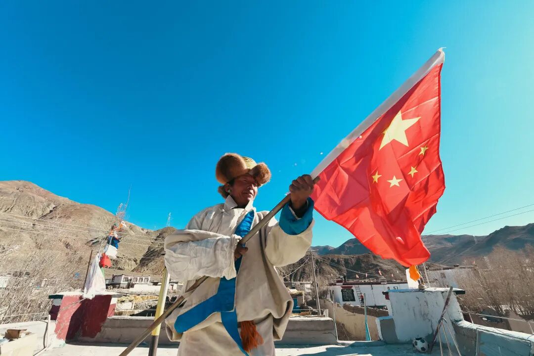 2026年1月1日,薩迦縣扎西崗鄉江堆村村民為新房換上嶄新五星紅旗。