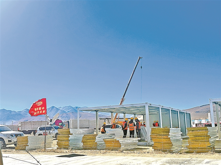 圖為2025年1月10日,定日縣受災(zāi)最嚴(yán)重的長(zhǎng)所鄉(xiāng)多個(gè)安置點(diǎn)正在組織力量快速搭建活動(dòng)板房。記者 次旦央吉 攝