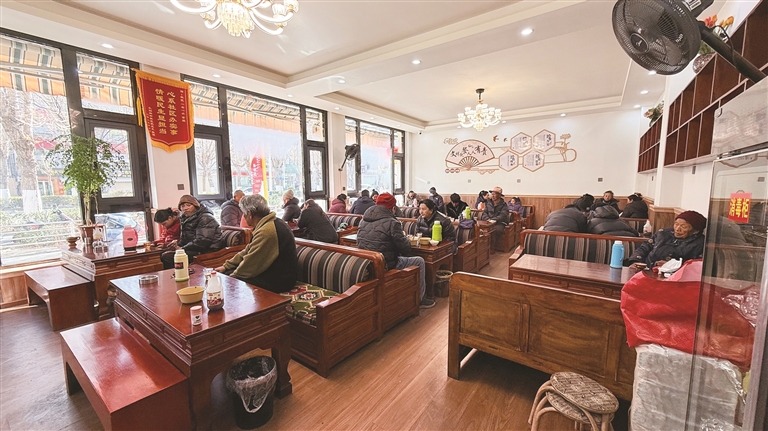 老人們正在社區驛站喝茶、聊天。