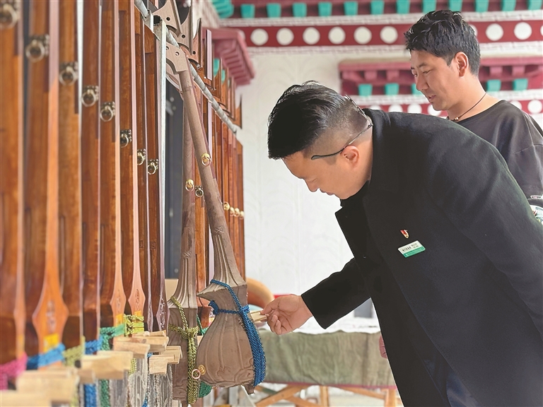 農行西藏分行客戶經理上門調研扎木念琴的制作銷售情況。