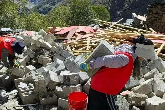 更令人感動的是,薩迦縣賽鄉、木拉鄉和吉定鎮的年輕黨員干部還自發組成志愿服務隊,馳援拉洛鄉災后重建。他們身穿紅馬甲搬石運料、協助作業,活躍在拉洛鄉災后重建一線。“能為災后重建盡一份力,身體雖然累,但心里很踏實!”薩迦縣賽鄉志愿服務隊隊員說。