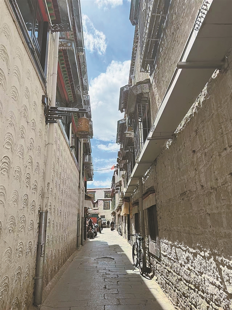 建筑作為文化的重要載體,在書中占據了重要篇幅。滿格格對八廓古城內56座古建大院進行了詳盡考證,逐一闡述每座院落的起源、地理位置、象征意義及歷史背景。為了讓內容更具可讀性,她不僅走訪相關領域專家、社區領導及大院居民,收集院落歷史由來與居民生活感悟,同時查找文獻記錄和老照片,結合實地拍攝的照片,形成古建大院昔日風貌與現實狀態的可視化對比,讓讀者直觀感受時光變遷中的建筑生命力。
