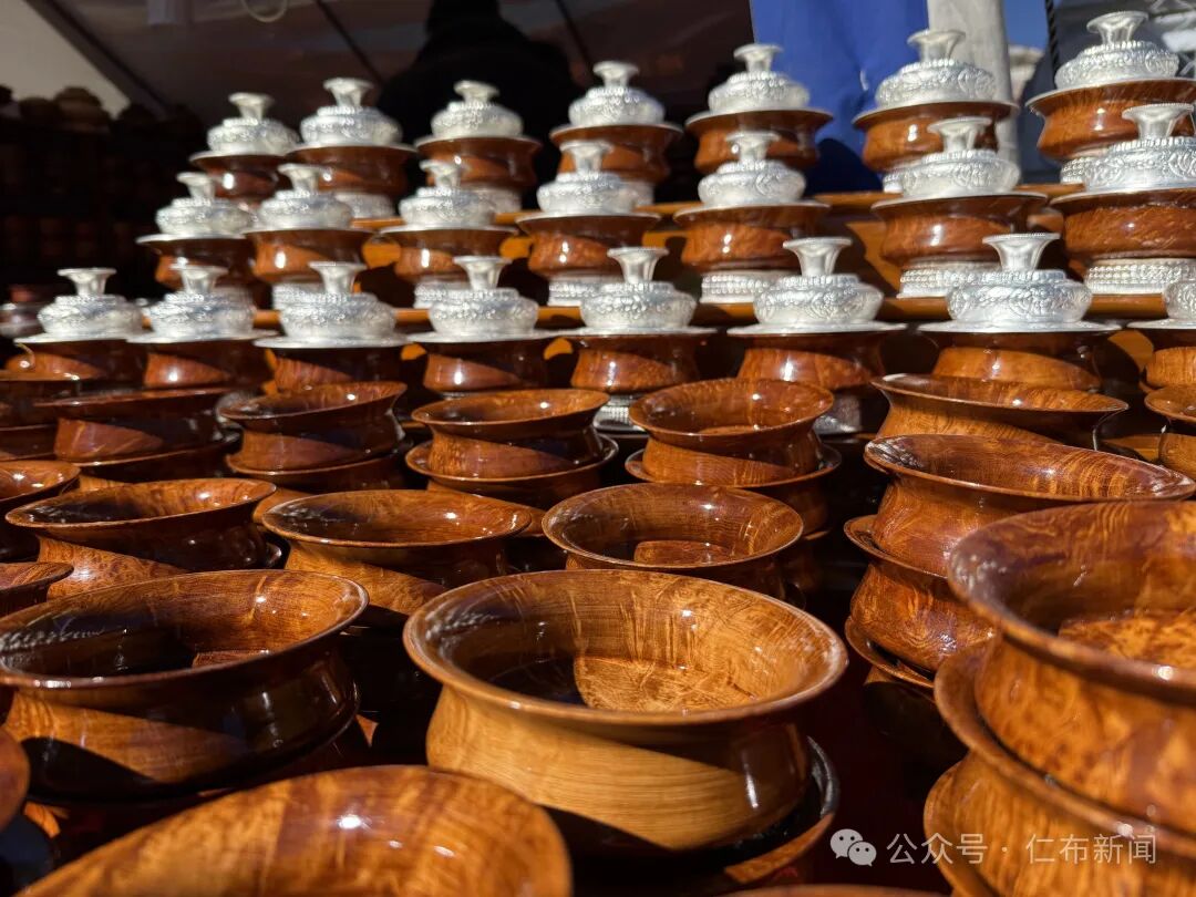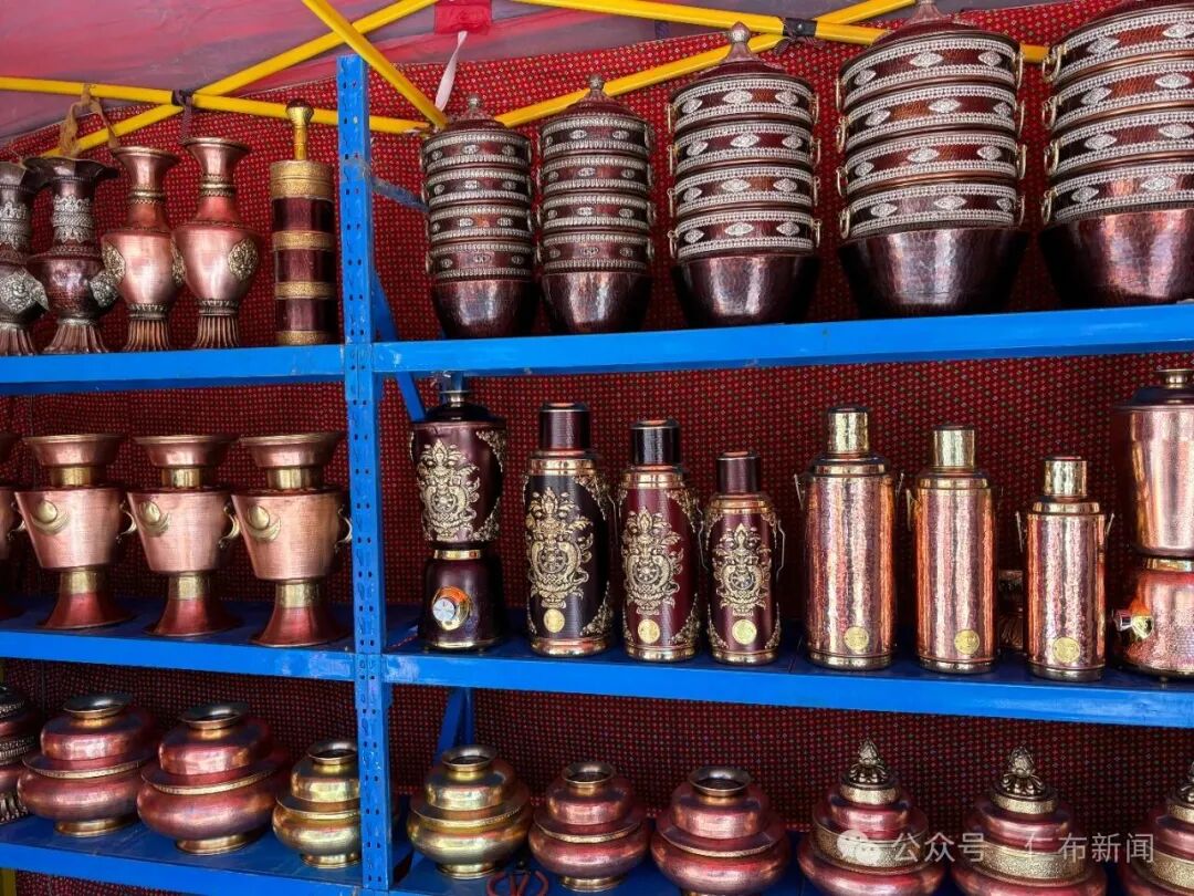 在年貨市場同樣引人注目的是各種木制品,攤位上,厚重的酥油木碗泛著溫潤的光,雕花精致的糌粑盒疊放整齊,“我每年羅薩前都來仁布縣,已經有好幾年了,生意也特別好!”攤位老板洛桑笑著說道。