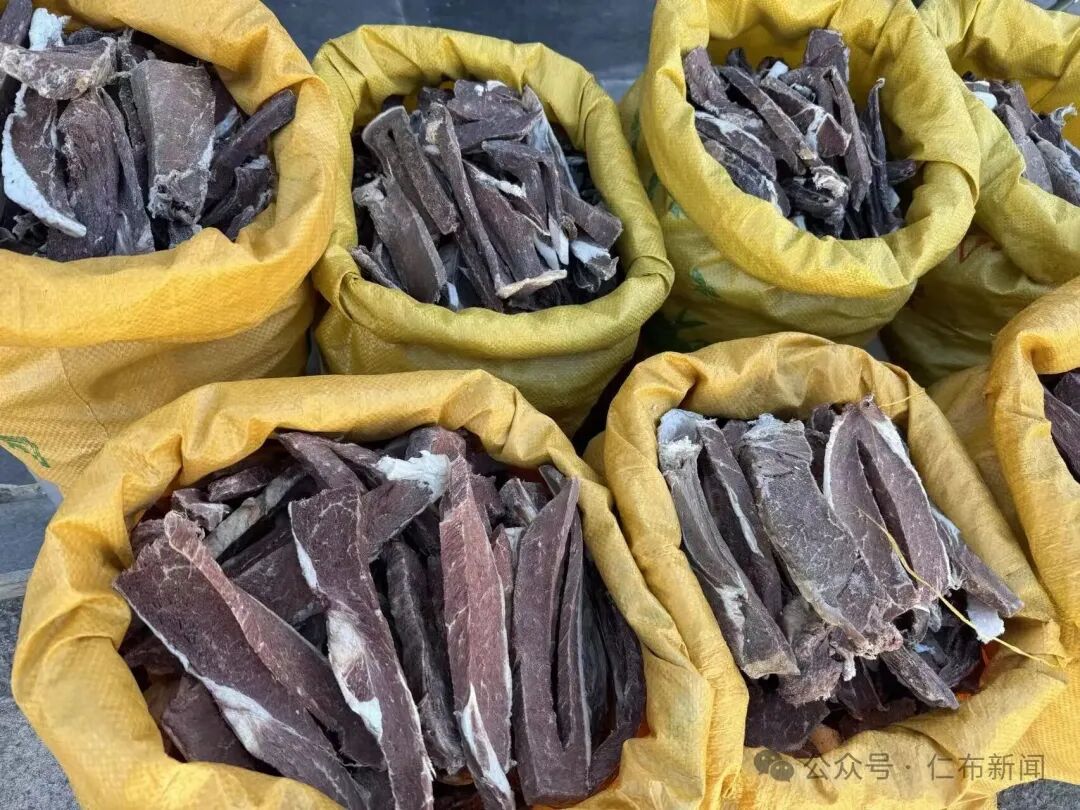 在食品區,傳統的“卡塞”金黃酥脆,形狀各異——蝴蝶形、耳朵形、條形,是新年茶桌上不可缺少的點心;成堆的奶渣潔白如雪,酸甜開胃;風干牦牛肉成排懸掛,是冬日里最扎實的蛋白質來源。