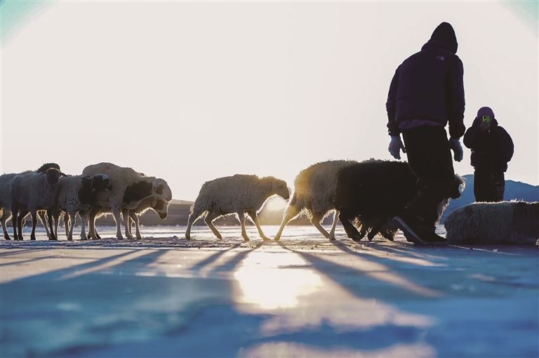 普莫雍措趕羊。記者 貢曲羅杰攝