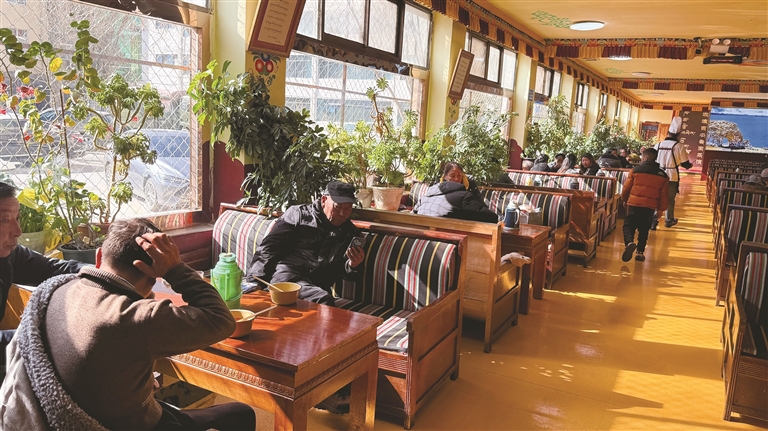 人文體驗的深度融合讓冬季旅行更具溫度。布達拉宮、大昭寺等核心景區調整冬季開放時間,布達拉宮的開放時段為游客提供充足游覽時間,游客可在暖陽中感受紅宮白宮的建筑藝術與歷史底蘊。八廓街上,群眾與游客交織,老光明港瓊甜茶館里的甜茶承載著本地生活氣息,糌粑、牦牛肉湯鍋、魯朗石鍋雞等特色美食讓人味蕾留香。