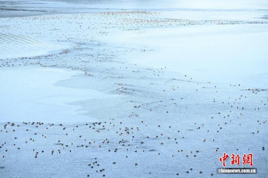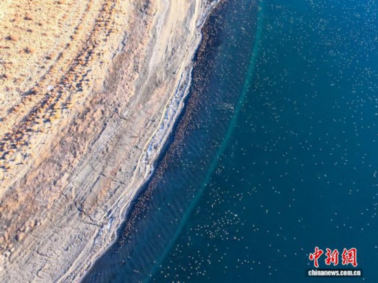 1月18日,成群候鳥在沉錯水域越冬。中新社記者 貢嘎來松 攝