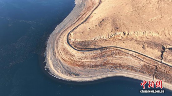 1月18日,西藏羊卓雍錯流域沉錯風光。沉錯地處西藏羊卓雍錯東部,是羊卓雍錯水系重要組成部分,湖形狹長、湖水深邃,因湖底地形復雜得名。作為羊卓雍錯流域內關鍵生態區域,沉錯已成為眾多候鳥越冬的樂園。(無人機照片)中新社記者 貢嘎來松 攝