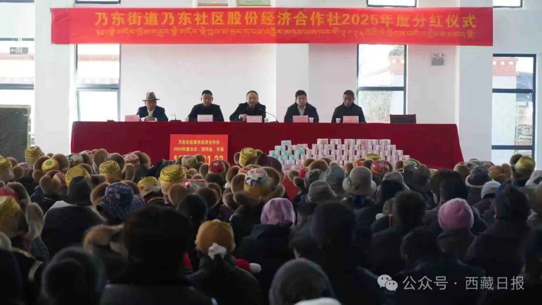 近日,山南市乃東街道乃東社區股份經濟合作社召開2025年度集體經濟分紅大會,將1008.74萬元分紅資金發放到全體1817名股民手中。