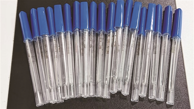 市民張女士家中有兩位老人和兩個孩子,一家三代都使用水銀體溫計,家里還存著兩三支,她感慨道,父母、自己這代以及孩子都習慣了用水銀體溫計,真希望能一直用下去。