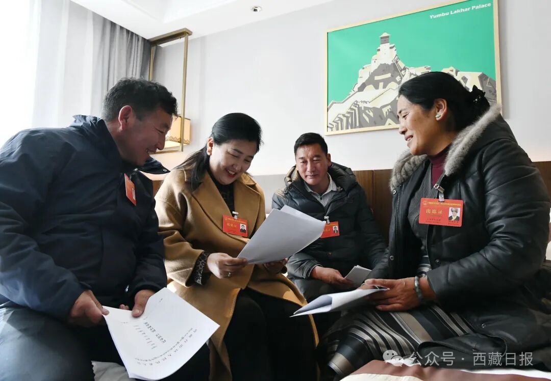 圖為參加自治區(qū)十二屆人大四次會(huì)議的代表正在駐地討論提案。記者 旦增蘭澤 洛桑 攝