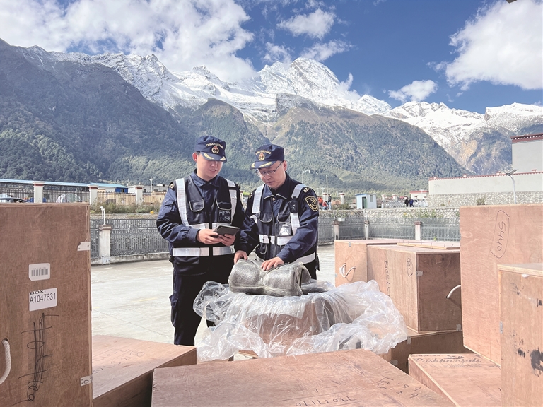 工作人員正在查驗貨物。圖由拉薩海關提供