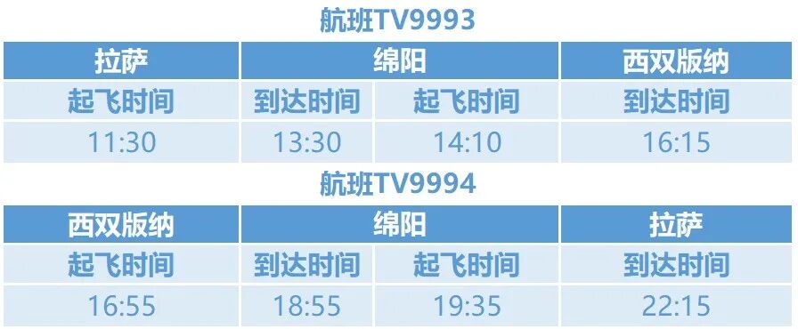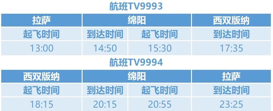 拉薩?綿陽?西雙版納航線