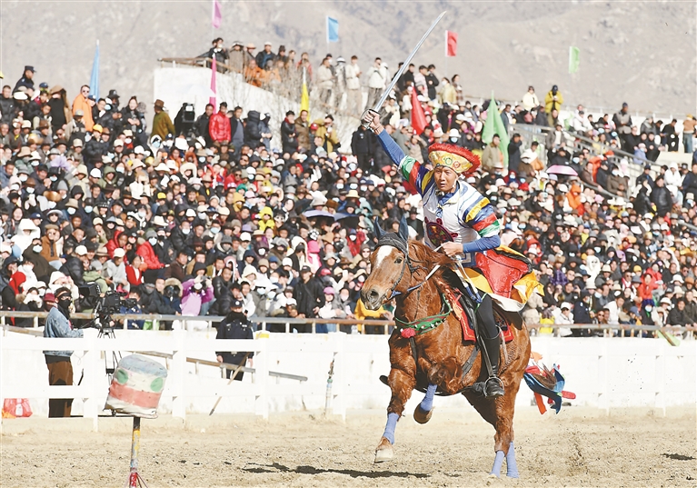 藏歷新年初三,由西藏自治區(qū)體育局、西藏自治區(qū)體育總會主辦的民族傳統(tǒng)馬術表演暨民族賽馬活動在拉薩賽馬場隆重舉行。數千名各族群眾歡聚一堂,欣賞驚險刺激的馬術表演與風馳電掣的賽馬盛況,共慶傳統(tǒng)佳節(jié),同享新春喜悅。