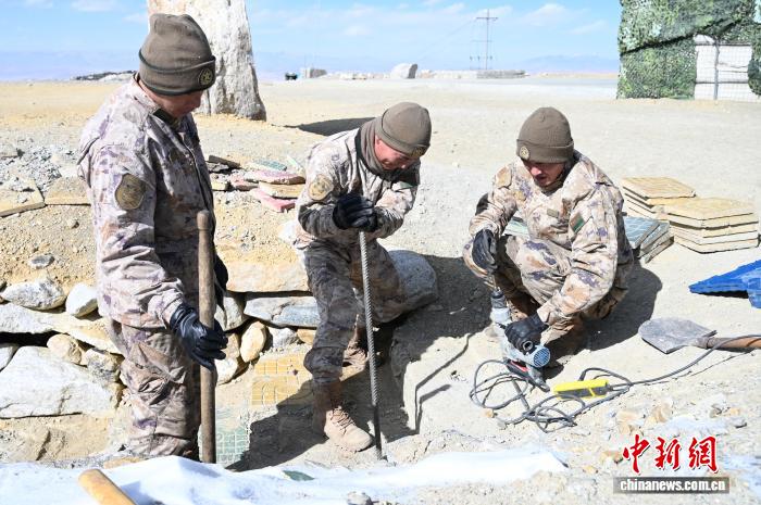 圖為在5592哨所,戰士們在維修臺階。趙朗 攝