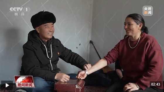 新疆特克斯縣包扎得爾牧區(qū)牧民 別克木哈買提?賈帕爾:居馬泰?俄白克醫(yī)生又來(lái)看我們,給我們貼春聯(lián)、送藥品、檢查身體,我們心里特別暖,特別感動(dòng)!