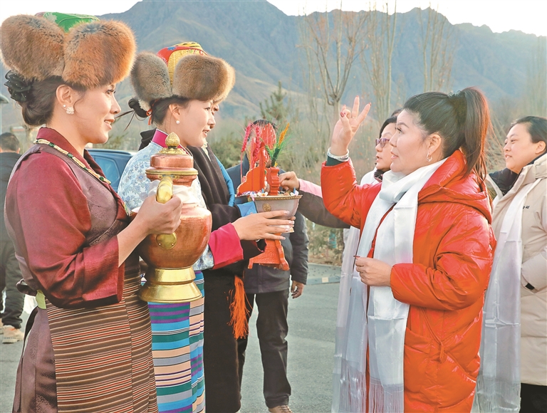 “藏族同胞身著盛裝,敲鑼打鼓,熱情地迎接八方來客,還精心準備了當地特色美食和地道非遺展示,大家內心滿是激動?!蓖醴颊f,“我們這次打破了傳統的旅游模式,不入住酒店,而是走進藏族同胞家中,深切感受著各民族一家親的溫暖。祝愿祖國繁榮昌盛,也祝山南市全體人民馬年大吉,扎西德勒!”