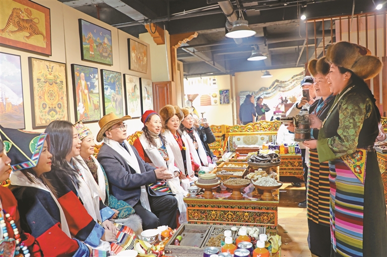 游客近距離體驗藏族習俗。