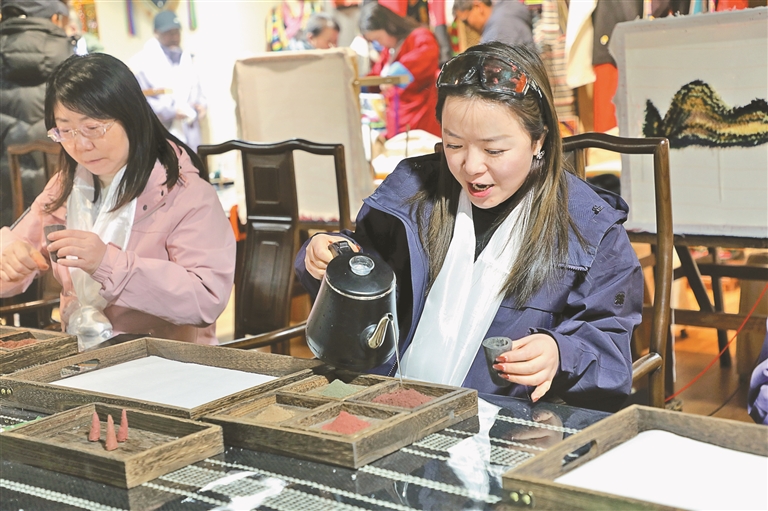 游客們走進雍布拉康與昌珠寺,探尋西藏第一座宮殿的深厚歷史底蘊,欣賞巧奪天工的藏式建筑藝術。在“雅礱里”文化藝術街區非遺展館,傳統編織、唐卡繪畫、藏文書法、民族服飾等非遺技藝與文創精品集中亮相,吸引了眾多游客駐足體驗。