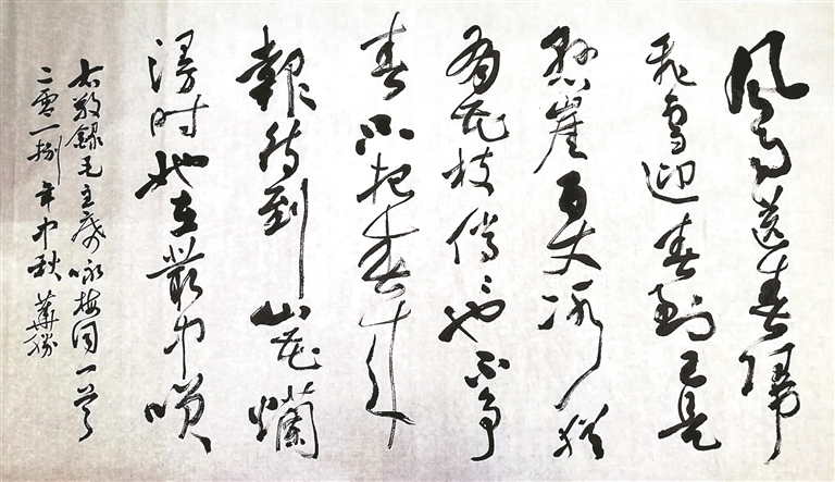 圖為侯華勝為拉薩市柳梧初級中學(xué)學(xué)生示范軟筆書法。
