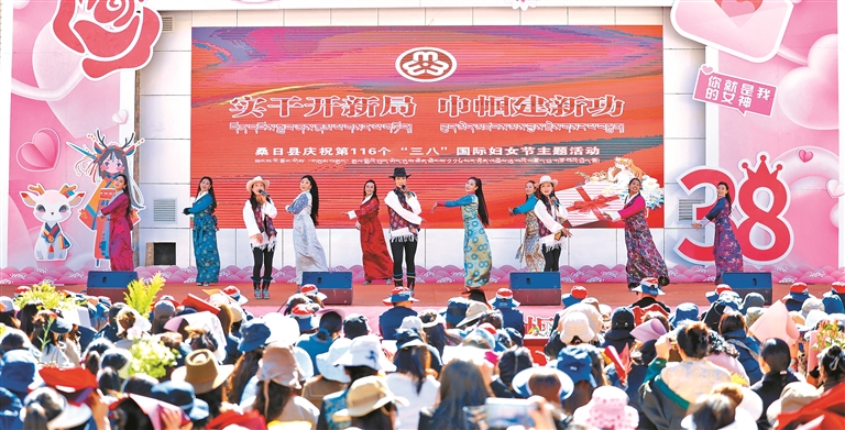 3月7日,山南市桑日縣以“實干開新局 巾幗建新功”為主題,開展“三八”國際婦女節主題活動。這是文藝匯演現場。記者 侯勇 旦增 武沛濤 攝