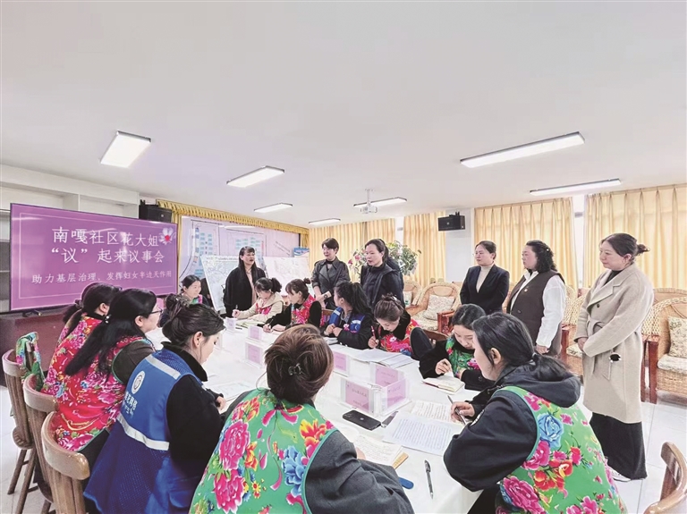 依托區委“聚龍”黨建品牌,堆龍德慶區婦聯培育“龍姐”為民服務品牌,打造有溫度的服務名片。張峰瑋表示:“要讓‘龍姐’成為婦女最親近的依靠?!比缃窬S權幫扶、政策宣講等服務已實現全域覆蓋,“找龍姐、信龍姐、靠龍姐”成為群眾共識,婦聯凝聚力持續增強。同時,聚焦基層治理,堆龍德慶區婦聯推動婦女議事會擴面增效,阿佳“議”起來議事會、“花大姐”議事會等在各村(社區)蓬勃開展,引導婦女從旁觀者轉變為主人翁,以女性智慧為鄉村振興注入活力。張峰瑋說:“要讓婦女敞開心扉聊家事、議村事,讓心聲有人傾聽、訴求有人回應。”