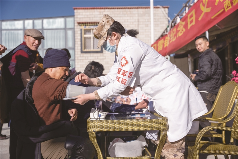 “咚咚咚……”伴隨著輕柔的敲門聲,西藏軍區總醫院專家團隊來到82歲老人曲珍家中,老人因腿腳不便出行困難,一直未能去醫院做詳細檢查。西藏軍區總醫院醫生次仁云丹走進房間,彎下腰與老人親切交談,仔細為她測量血壓、聽診心肺,還詳細詢問老人的飲食和用藥情況,叮囑老人注意日常護理細節,還為老人送上了常用藥品。“這次開展大型義診活動不僅是為了傳承和弘揚雷鋒精神,更是我們人民軍醫踐行‘為人民服務’宗旨的具體體現。”次仁云丹說,“希望通過這樣的活動,讓廣大居民群眾在家門口就能享受到優質的醫療資源,切實解決他們看病就醫的急難愁盼問題,把健康和溫暖送到更多群眾身邊。”