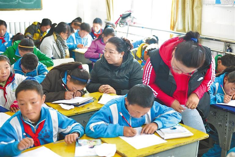 圖為拉薩市城關區二小老師在當雄縣烏瑪鄉第二小學講示范課。